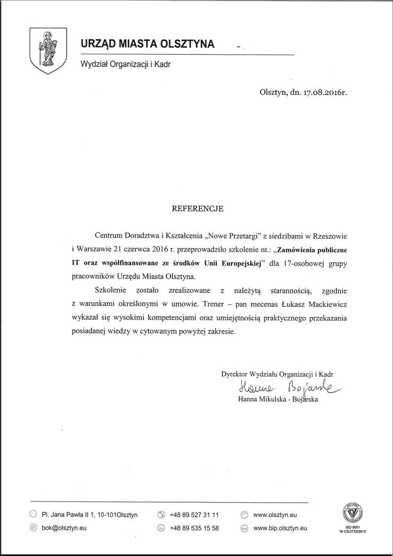 - Warsztaty Zamówień Publicznych mec. Mackiewicza dla Biur Kontroli